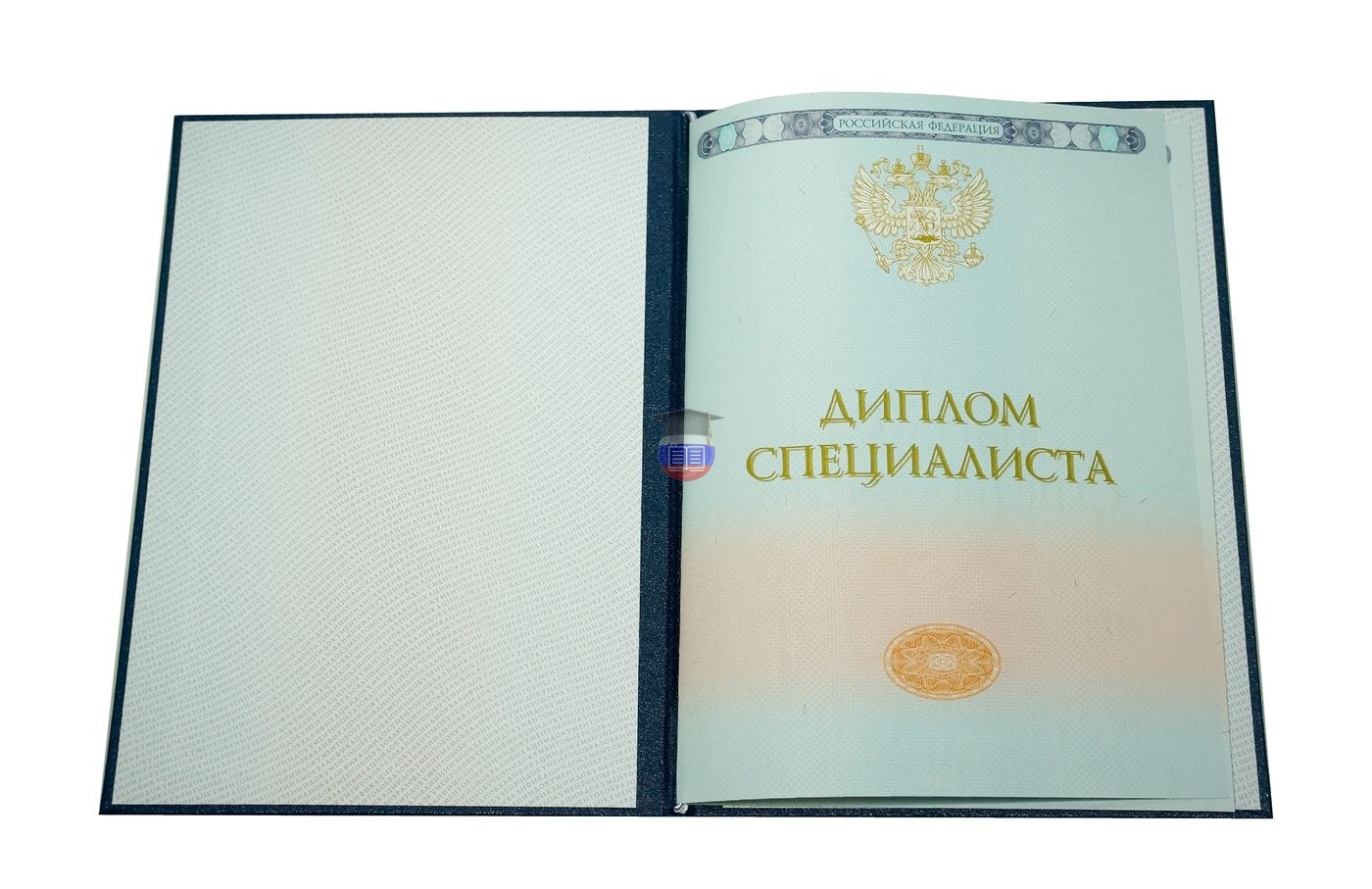 Диплом специалиста — документ о присвоении квалификации после прохождения специальной программы обучения. Её особенности — узкий профиль, сочетание углубленной теории с практикой, обучение в течение 5-5,5 лет. В комплекте — бланк установленного образца, заполненный по правилам Минобразования и науки РФ. Степени защиты — голографические знаки, водяной оттиск, узор из непрерывных линий, мокрая печать вуза, регистрационный номер соответствующий региону выдачи.