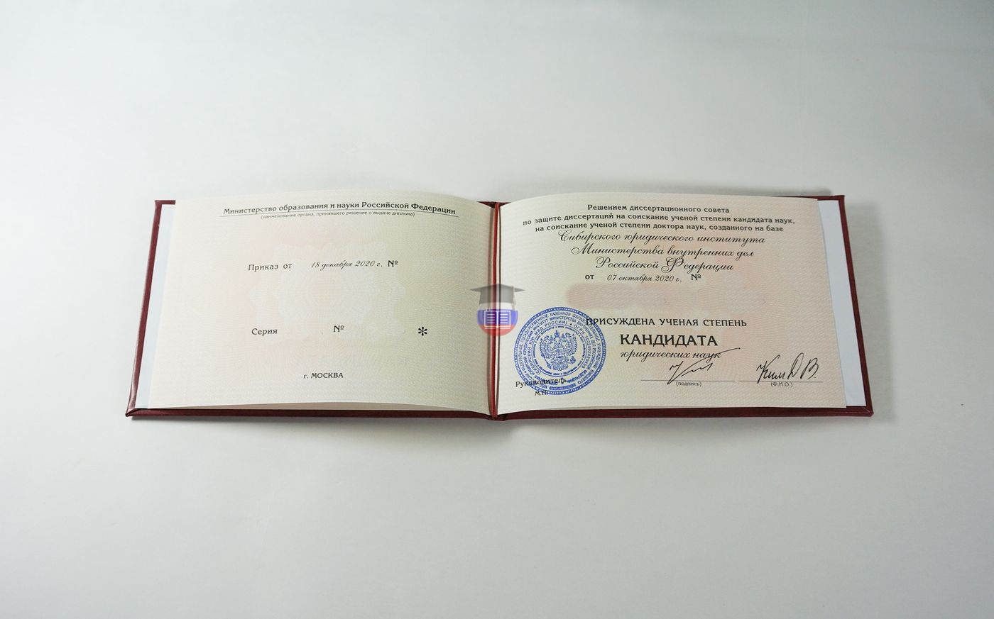 Заполненный диплом кандидата наук с 2015 по 2023 годы выдачи