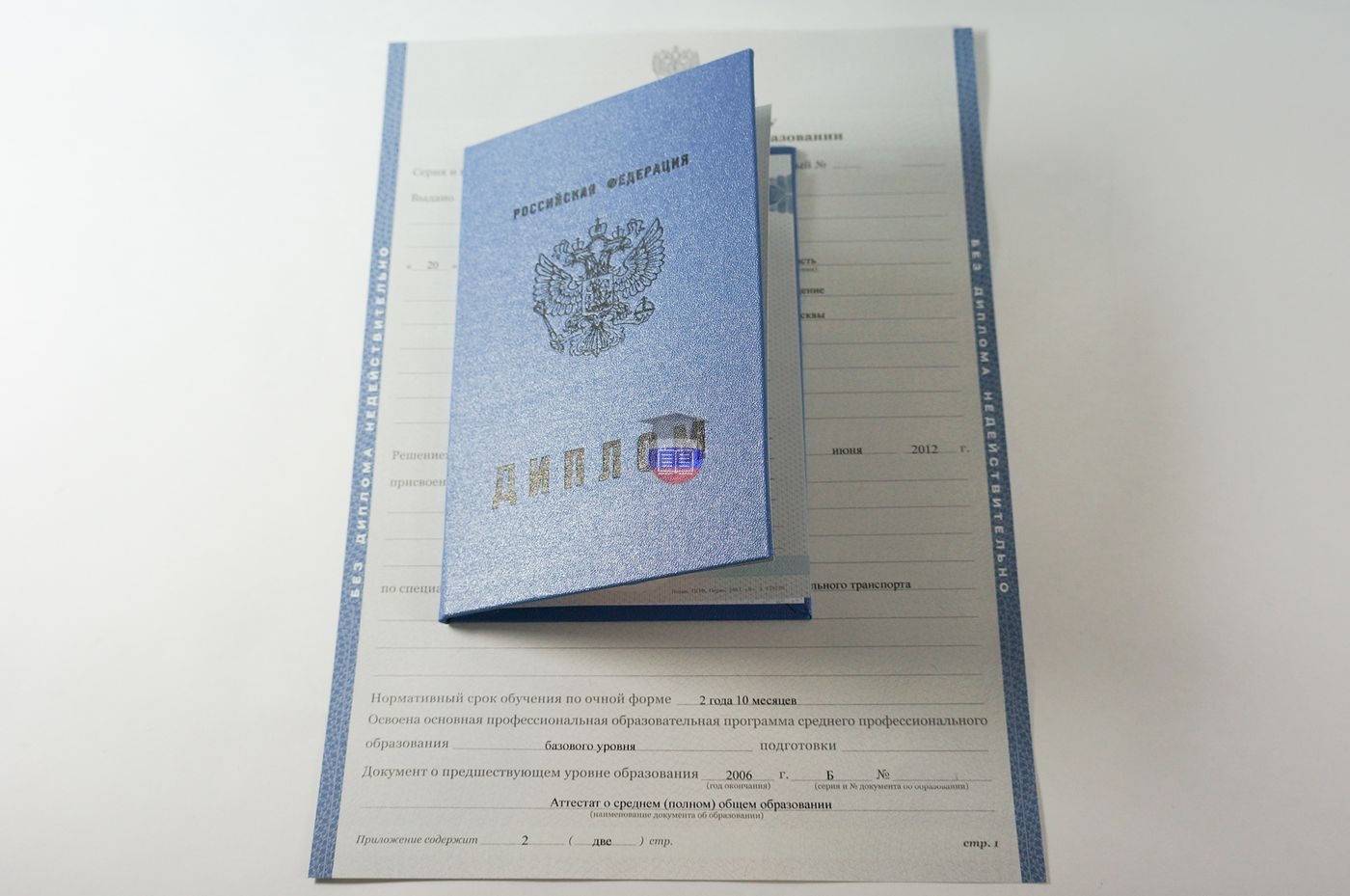 Диплом о среднем образовании с 2008 по 2010 годы