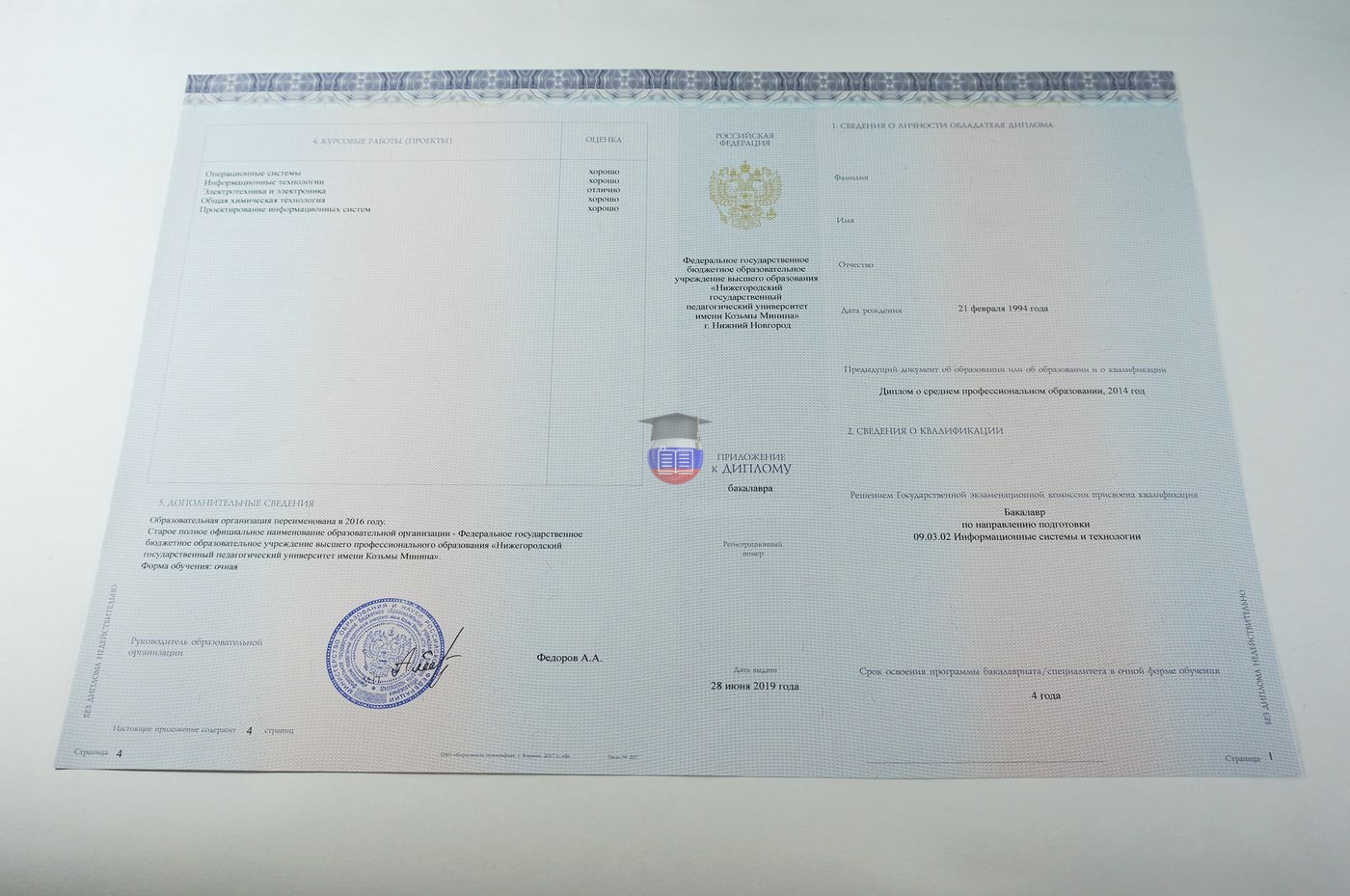 Пример заполненного диплома бакалавра 2014 - 2023 годов